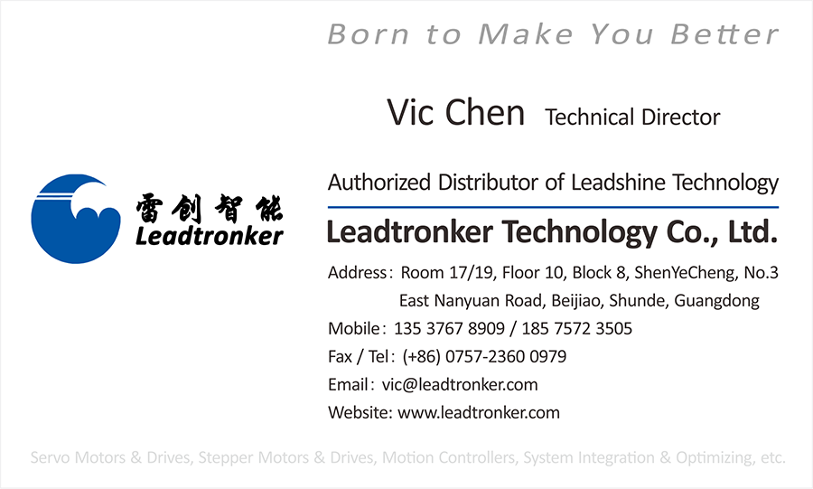Founded in 1997 by Warren Li, a MIT PhD graduate and former USA professor, Leadshine Technology Co., Ltd. is a leading technology company dedicated to design, manufacture, market, and support reliable and affordable motion control products based on the latest control technologies. Leadshine offers a full complement of products including motion controllers, control systems, integrated servos, servo drives & motors, easy servo drives & motors (closed loop steppers), integrated easy servo motors, integrated steppers, stepper drives & motors. Today, Leadshine is one of the largest motion control companies in the world to provide solutions and quality products to tens of industries, and thousands of OEM clients in Asia, Europe, North & South America, Australia, and Africa. Led by Dr. Li, a PhD majoring in robotics & servo controls, Leadshine has one of the strongest R & D teams in the motion control industry. That team consists of more than 100 R & D engineers and All of them are highly educated with most of them carry PhD & Master degrees in controls, electrical & electronics engineering, mechanical engineering, mechatronics, computer engineering, and computer science. Their strong background and experience allow Leadshine capable of designing superior quality products based the latest technology in the most efficient way. Leadshine operates manufacturing facilities which are superiorly equipped, professionally staffed, and ISO-9001 certified. That allows Leadshine to provide highly reliable quality motion control products OEM clients in the shortest time. |